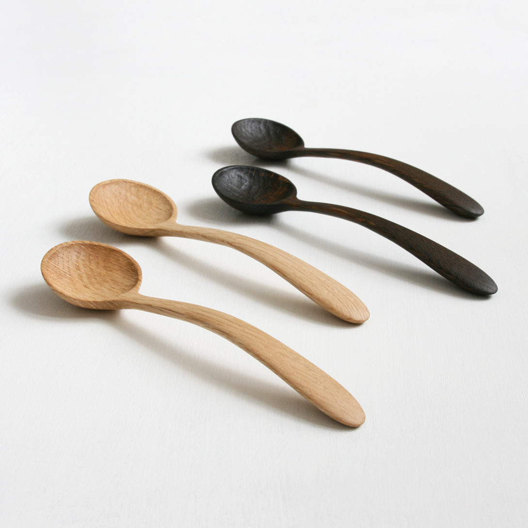 white + ebonized oak soup spoons
